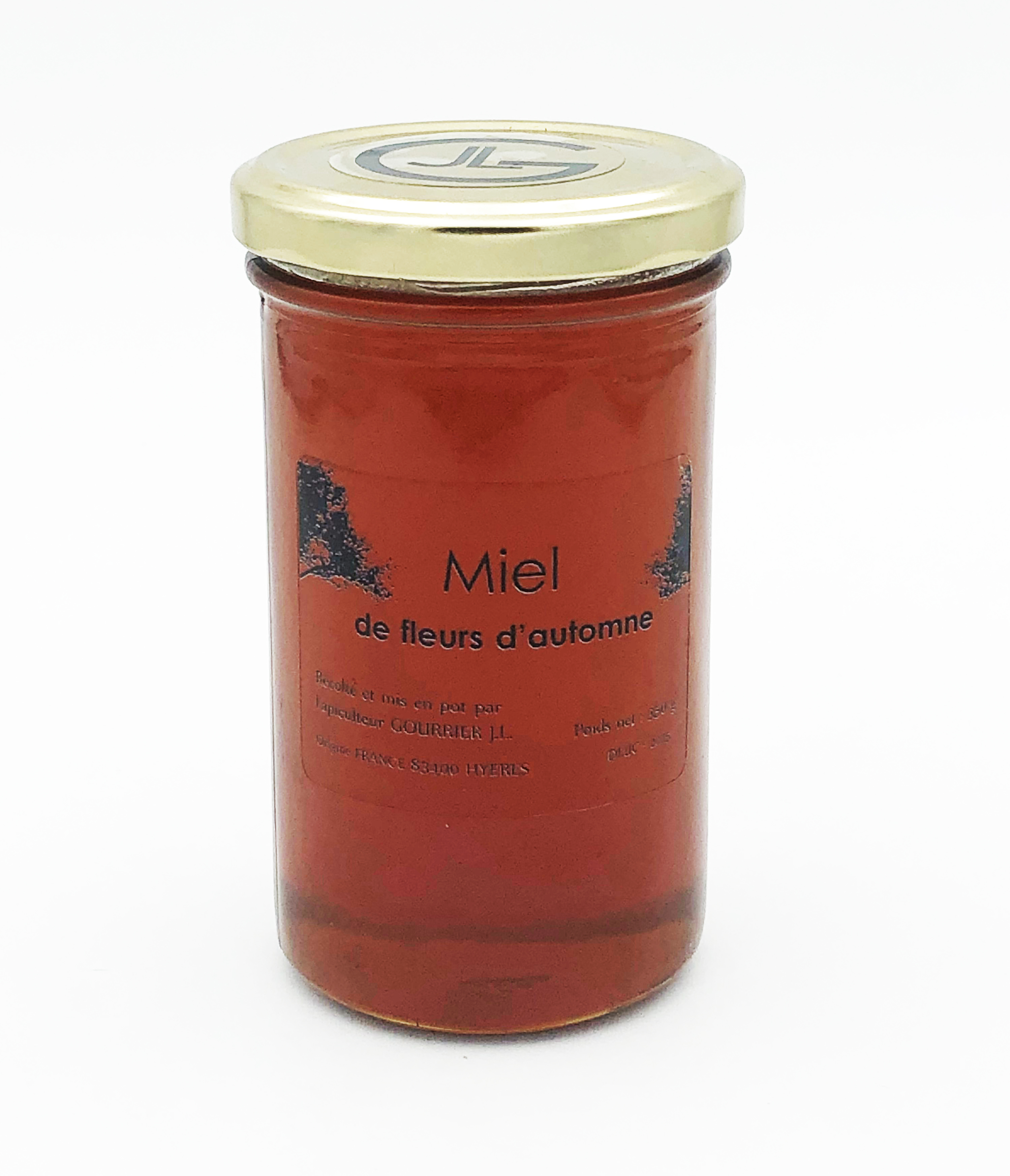 Ce miel en fin de saison est composé de divers pollens de fleurs de lierre, eucalyptus et d’autres fleurs. Son goût est plus prononcé, s’approchant du caramel.